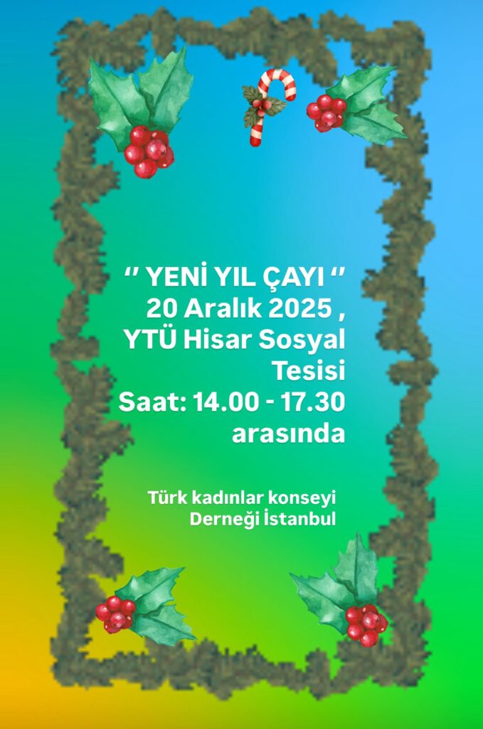 ‘’ Yeni Yıl Çayı’’ düzenleme kararı aldık. Uzun araştırmalardan sonra, çalışan üyelerimizinde katılmasına imkan tanımak için , ‘’ 20 ARALIK cumartesi günü , Yıldız Teknik Üniversitesi Hisar Sosyal Tesisinde